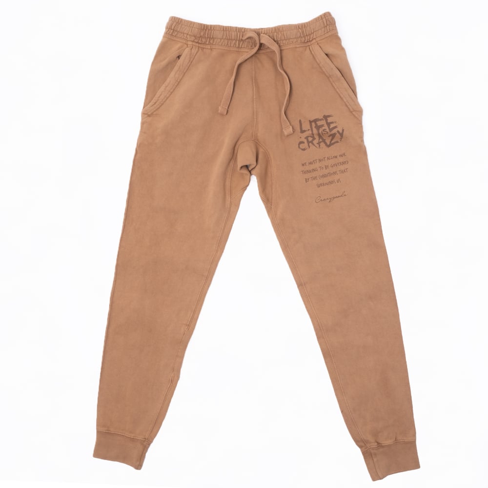 Our unisex jogger with a gusset insert at crotch for a drop crotch feel, vintage wash. 20 singles 100% cotton face yarn. Ribbed cotton cuff and waistband, drawstring at waist. Two side pockets and a back pocket.